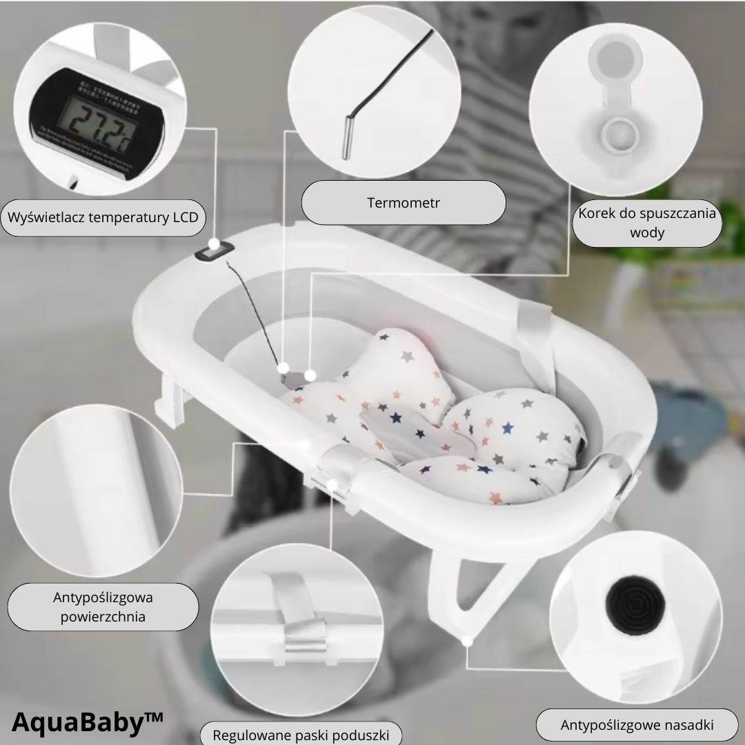 AquaBaby™ – Składana wanienka z termometrem + Poduszka GRATIS